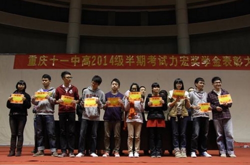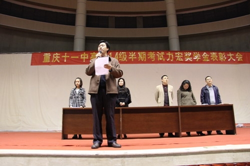1121晚,我校高2014级全体师生在体育馆召开了半期力宏奖学金表彰大会。参加此次会议的领导有才俊航空教育培训学校周校长、李建兵副主任马凯组长、余文姜老师、刘翠碧老师、蒲可夫老师。本次表彰主要是针对在半期考试中取得优异成绩和较大进步同学。