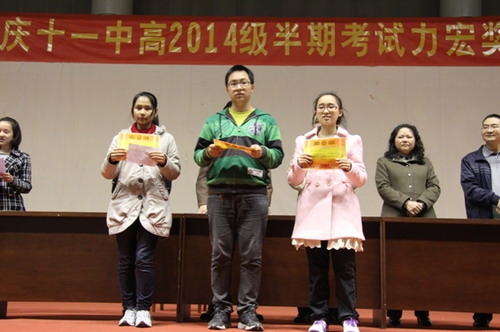 在李主任的精彩演讲后,由马凯组长宣布此次受表彰的同学名单。表彰分为一、二、三等奖和文理科进步奖。黄玉婷、苏薄、杨富瑜等50名同学获得表彰。