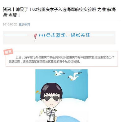 近日,海军招飞办与重庆市教委共同组织的重庆市海军航空实验班招生定选工作圆满结束,该班是海军在西部地区建立的首个航空实验班。