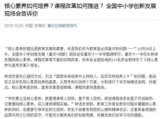 [重庆日报教育周刊] 核心素养如何培养?课程改革如何推进?