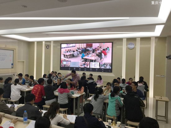 来自重庆市各区县的49名物理教师在万州高级中学进行了教学pk ,其中重庆十一中代表南岸区参赛。和李滔老师准备相同课题的有八位选手,比赛场地在万州高级中学未名厅,李滔老师是第一个出场。李老师通过“破窗神器”引入新课,敲不破砸不烂的钢化玻璃瞬间被“神器”击碎,激发学生学习兴趣,感受弹力的巨大威力;接着让学生在“玩”橡皮泥和弹簧中收获“形变与弹力”概念,体验学习探究过程,引导学生深刻认识产生弹力的几个因素,通过手压弹簧、水球与木板作用、橡皮筋挂水球直观形象体现弹力方向与形变的关系,最后在分组探究试验中得出“胡克定律”,其中创造性的利用杨氏模量仪器探究钢丝微小形变并验证胡克定律成为本堂课最大亮点。纵观整堂课,亮点突出,正如评委所言:课堂教学准备充分,重点突出,教材解读到位;充分体现物理的放大思想、替代思想、因果关系;创设情景代入感强,师生互动活泼灵动;学生在探究中学习,在学习中培养科学思维,创新精神。