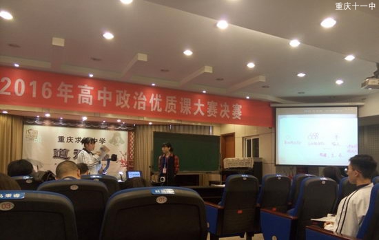 三年一届的重庆市高中政治优质课大赛于2016年10月25—28日在求精中学举行。我校郑云霞老师代表重庆市第十一中学校、重庆市南岸区参赛,以重庆市高中政治前三甲的优异成绩荣获重庆市高中政治优质课大赛一等奖!