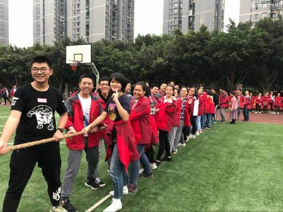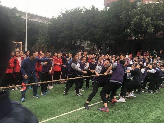 运动会分两个议程,第一项是团体广播操比赛,各班身着统一服装在指定位置进行比赛。同学们发扬团结一致、奋发向上的精神,站队迅速、做操动作规范、到位,精神饱满,步伐一致,动作整齐划一,获得评委老师们的阵阵掌声。第二项活动是拔河,各班赛前进行分组抽签,比赛队员一上场,由学生和老师组成的啦啦队也如影而至,分列两旁。随着裁判员的一声哨声,比赛正式开始。场上队员们奋力拼搏,使出全身气力一争高下;场外观战者助威声、喝彩声、加油声响彻校园,处处呈现出团结、协作、奋进的集体力量。而最终的冠军由25班获得,他们和教师代表队进行了友谊赛,全校师生洋溢在轻松愉悦的氛围之中。