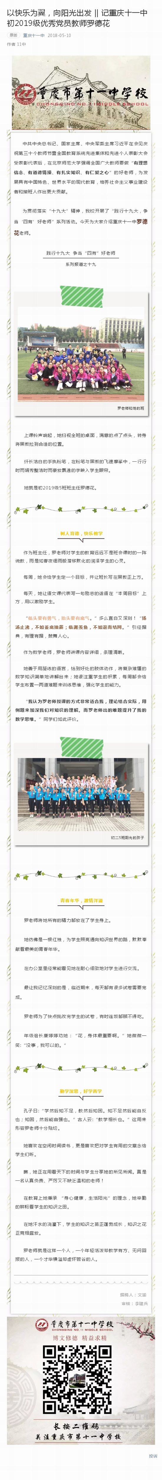 [重庆11中官方微信]以快乐为翼,向阳光出发 || 记重庆十一中初2019级优秀党员教师罗德花