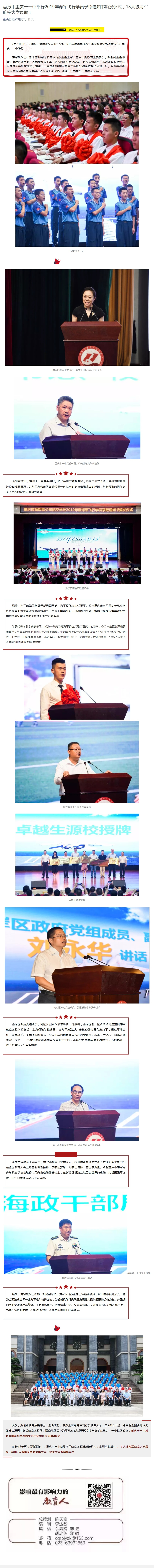 【重庆日报】重庆十一中举行2019年海军飞行学员录取通知书颁发仪式,18人被海军航空大学录取!