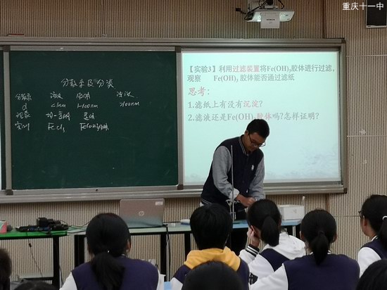 2019年10月14日,重庆市南岸区各中学化学教师相聚在十一中博文楼, 由高一年级季婕老师示范学历案的使用。季婕老师本次选取了近期教学中“分散系及其分类”的内容,并对教材实验进行了巧妙的改进,让学生在具体的实验操作中完成探索性学习。