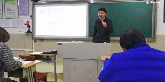 精彩的课后往往伴随着精彩的说课和点评,第二阶段的教研继续,分三部分进行。第一部分:授课老师说课。第二部分:广益中学备课组长介绍经验。第三部分:区教研员傅文霄老师做总结。