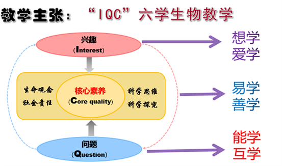 课前,王晓辉阐述了自己的教学主张:“IQC”六学生物教学,学习兴趣是前提,问题教学是核心,培养学生核心素养是目标。