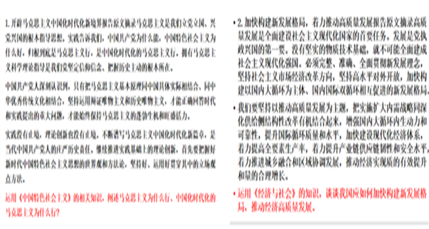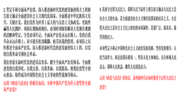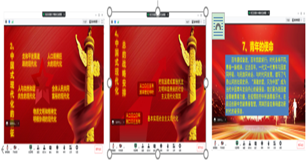 刘志荣老师结合必修一《中国特色社会主义》的教材内容,与学生共同探讨了“马克思主义为什么行?”的内容。陈秀勤老师结合必修二《经济与社会》的教材内容引导学生探讨“如何加快构建新发展格局,推动经济高质量发展?”谢洪英老师结合必修三《政治与法治》的教材内容,引导学生分析“中国共产党为什么要坚持全面从严治党?”王江丽老师结合必修三《政治与法治》的内容,引导学生探讨了“在新时代如何推进全过程人民民主建设?”