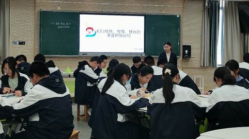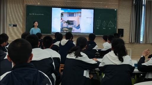 刘潇箫老师以十一中学校门口旧房改造项目为背景,引导学生从中发现数学问题,如计算所需材料、卡车运沙等实际问题中抽象出数学问题,从而引入本节课内容——棱柱、棱锥、棱台的表面积与体积。通过设置小组探究活动,引导学生主动进行思考,对数学知识进行主动建构,实现感性认识到理性思考的过渡,形成“实际问题分析—数学问题思考—数学模型建立—应用解决问题”的学习闭环,体现数学知识实用价值的同时,有效提升学生直观想象、数学建模的数学核心素养。课堂中,利用动画辅助讲解祖暅原理,将抽象几何体形象化,将数学史与现代信息技术的结合,有助于学生建构相关几何模型。