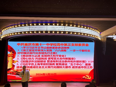 第一项议程,支部书记高波同志组织党员学习了重庆十一中党委一月规定学习的学习内容。