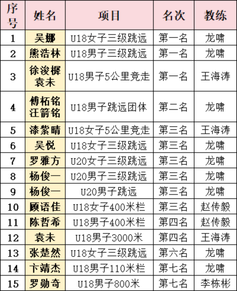 其中,吴娜同学在U18女子三级跳远比赛中达到国家一级运动员标准,成为今年重庆市中学生田赛项目首位获此殊荣的选手。