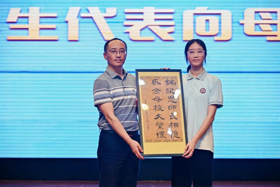 文益堂灯光渐暗,冯浩韵、刘韵雯两位老师合唱的《一路生花》拉开典礼序幕。当熟悉的老师站在聚光灯下,那些平日严肃的面孔此刻温柔得令人心颤。李顺林校长的致辞中,没有套话,只有真诚:“母校的目光将永远追随着你们,为你们的每一次突破而欣喜,为你们的每一份成就而自豪!无论你们走多远、飞多高,母校永远是你们精神的故乡、力量的源泉!”